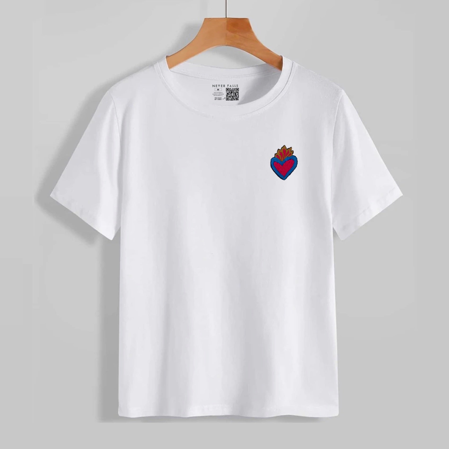 Das Never Falls Symbol Tee ist das perfekte T-Shirt für dein nächstes Abenteuer. Die Symbole werden von einer Kooperativen von mehr als 35 Frauen in Oaxaca, Mexiko per Hand bestickt.